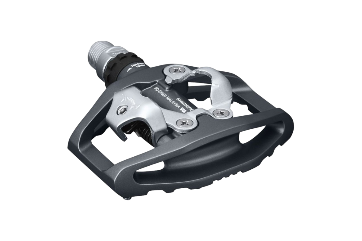 Shimano is a high value SPD pedal designed for trail riding. Its large dual-sided platform creates a wide contact area between your shoe and pedal for improved stability and power transfer. You can trust the Shimano’s durability in the rough stuff. A protective cage, chrome-molly spindle, and sealed bearings ensure low-maintenance performance.