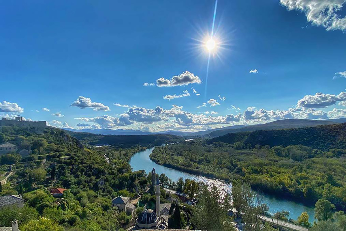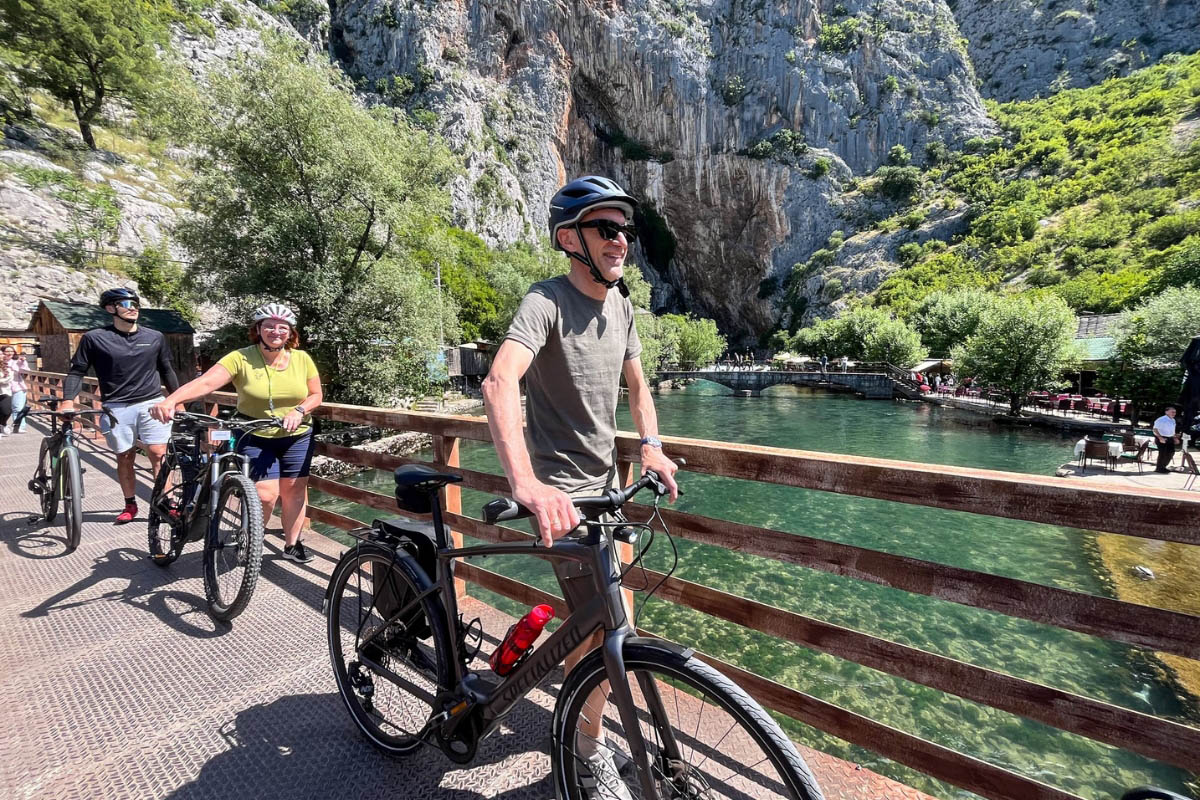 Start your ride in Mostar, exploring the Old Bridge and enjoying a morning coffee before heading out through vineyards and the Jaffa Plantations toward Blagaj — an oasis of peace known for the Blagaj Tekke and stunning natural scenery.