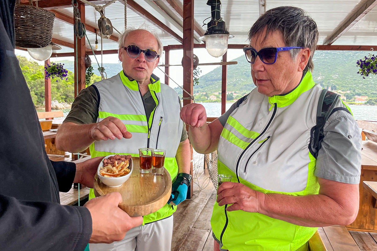 Optional stops in Ston include a visit to the City Walls of Ston and a tasting of local cuisine for lunch. Continue your ride toward Ston Bay, where you’ll board a boat to visit a working oyster farm. Learn about the centuries-old oyster farming tradition and taste fresh Ostrea edulis oysters directly from the sea, paired with local wine — a true Mediterranean delicacy.
