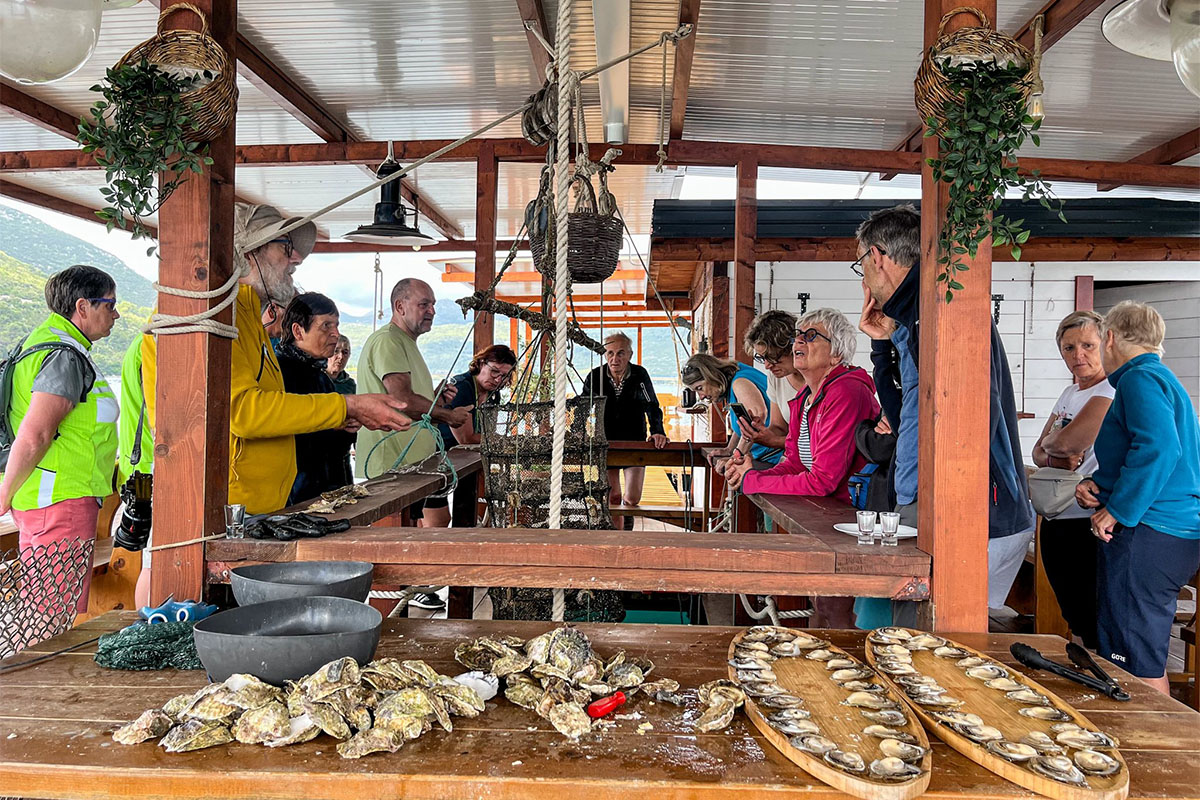 In Mali Ston Bay, a protected nature reserve, you will board a boat and visit a working oyster farm to learn about the traditional cultivation of Ostrea edulis, a rare and highly prized oyster species grown here since Roman times. Taste fresh oysters directly from the sea, paired with local wine, and discover why Mali Ston oysters are considered a true Mediterranean delicacy. (optional – on reqest)